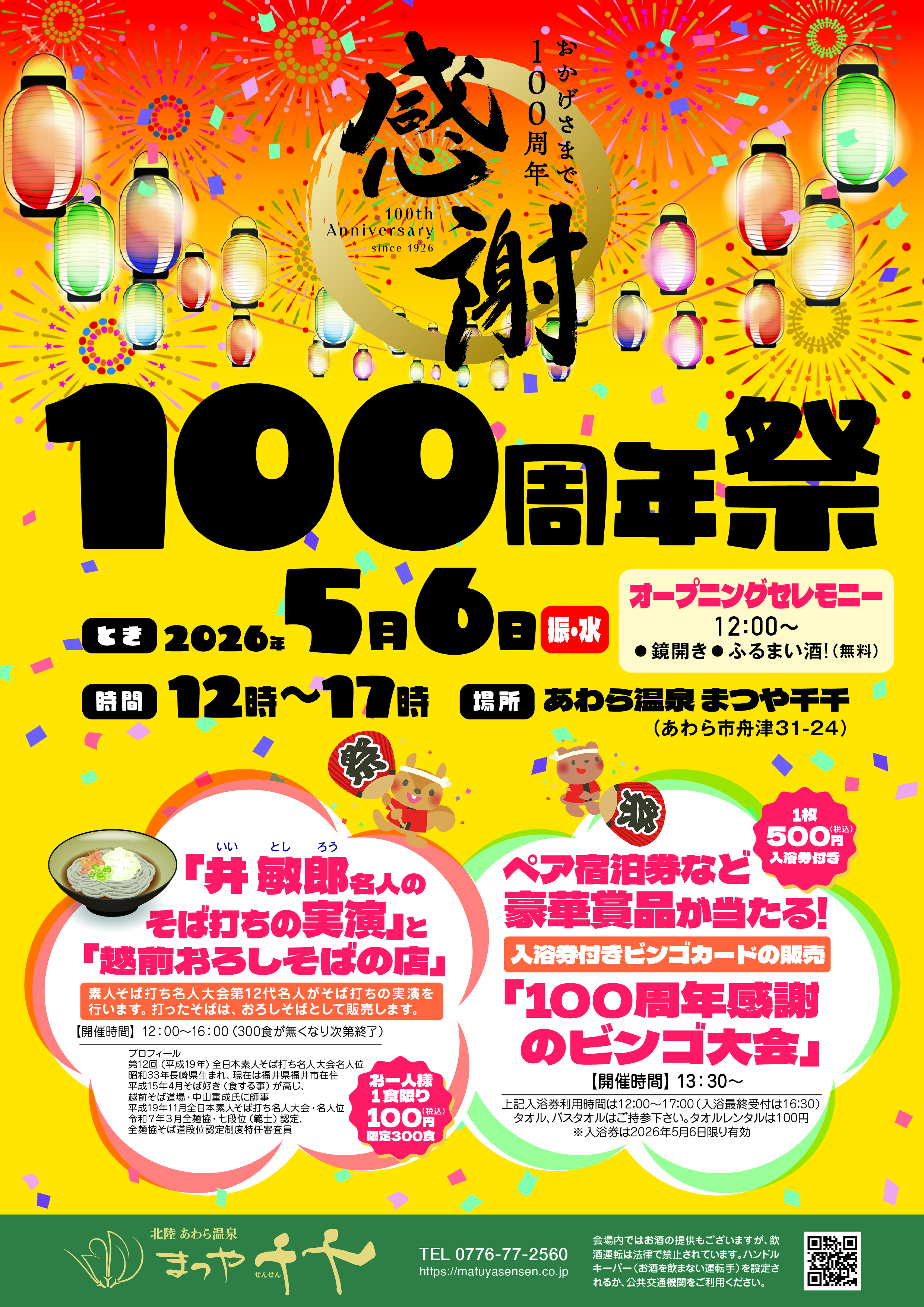 おかげさまで当館は、無事に創業100周年を迎えることができました。 これもひとえに、長きにわたり支えてくださったお客様、そして日頃よりお力添えをいただいている皆様のおかげでございます。